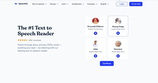 Speechify 可以将任何格式的文本转换为听起来自然的语音。该平台基于网络,可以将 PDF、电子邮件、文档或文章转换为可以收听而不是阅读的音频