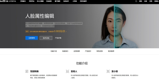 对人脸属性特征进行编辑,实现性别互换、年龄改变等特效,为用户生成多种特效照片,可应用在趣味社交、短视频等娱乐场景