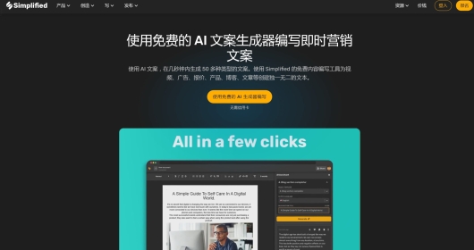 使用 AI 文案,在几秒钟内生成 50 多种类型的文案。使用 Simplified 的免费内容编写工具为视频、广告、报价、产品、博客、文章等创建独一无二的文本。
