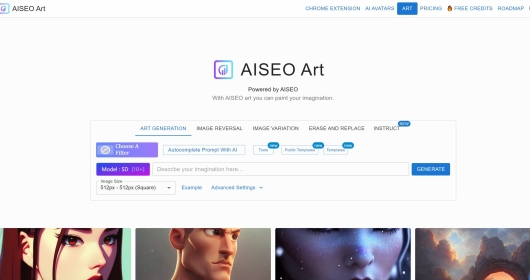 AISEO艺术是一款AI小助手,帮你把想法变成艺术。您可以在几分钟内生成高质量的艺术作品。此外,AISEO也可以帮助您低成本创建创意图稿。